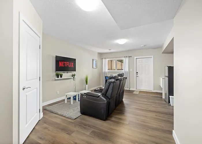 Lägenheten 1 Bedroom Edmonton ligger ungefär 25 minuters gångavstånd från Ice Castles och 2 km från en familjeanpassad sevärdhet som Galaxyland. Den 93 m² stora lägenheten har golfbana, som passar perfekt för gästerna som gillar att hålla sig aktiva.